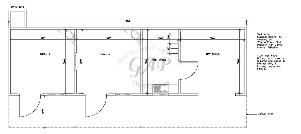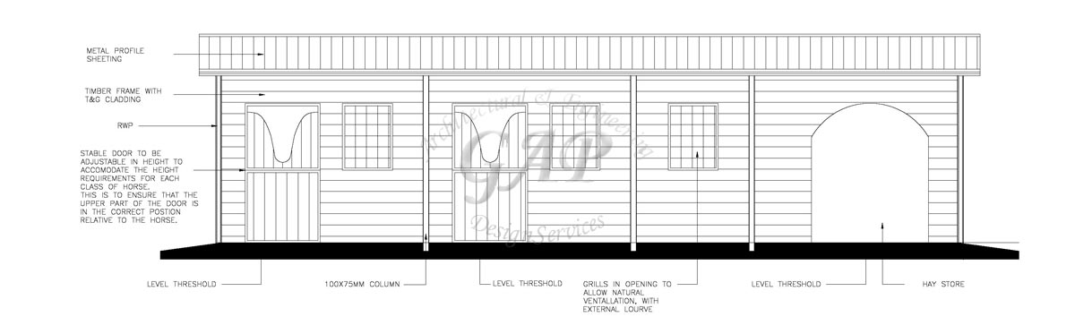 Through discussions with the LPA Officers a boundary fence which was both visually acceptable and suited the needs of the Client was derived and minor alterations made to the stable block itself were put forward by us in order to make the block more practical for the purposes of its use. These included making the tack room larger to facilitate the ease of carrying and storage of saddlery. Another fundamental change was that the stable doors were changed to facilitate the housing of different sizes of horse, that is to say that two different heights of door can be hung to allow horses of different heights to be able to be housed and yet be able to look out without the risk of chafing their necks.