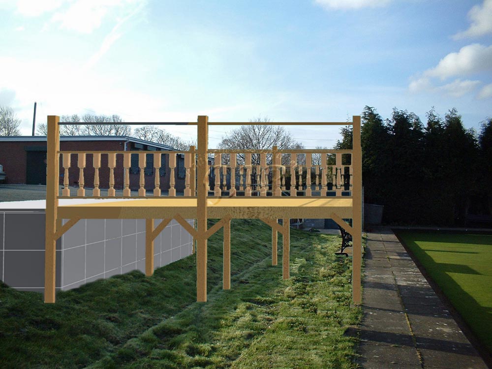 The Gelligaer Bowls Club is a long established club with its own rink, car park and clubhouse. Whilst the car park and clubhouse are on the same level the rink is set at a much lower level. Our brief was to design and obtain planning consent to construct a viewing platform level with the car park. The platform would enable spectators and in particular those spectators who were wheelchair bound to be able to sit or stand in comfort to what matches being played whilst not being situated in the car park area or being crowded adjacent to the rink side path.