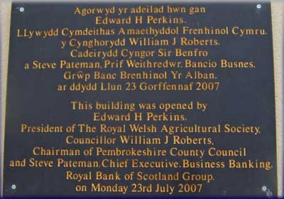 As a charitable trust, the Society relies heavily on sponsorship to fund many of its capital projects. Each year a different County from the Principality hosts the show as Feature County. For the 2007 show the Feature County is Pembrokeshire County who in association with the NatWest Bank co-sponsored the principle costs in constructing the building.